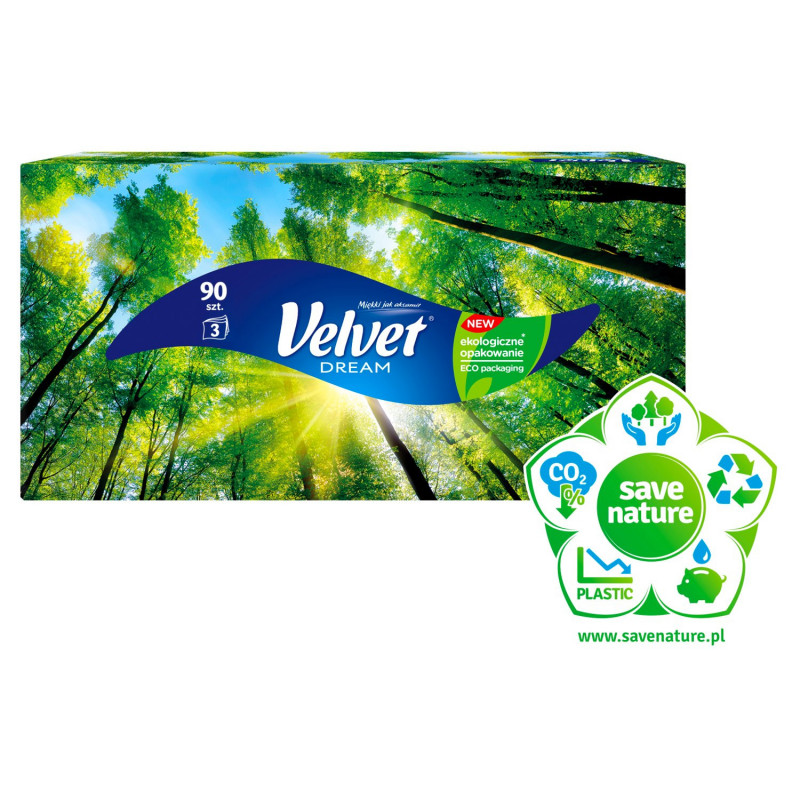 Wszystkie chusteczki higieniczne Velvet produkowane są w 100% z celulozy.