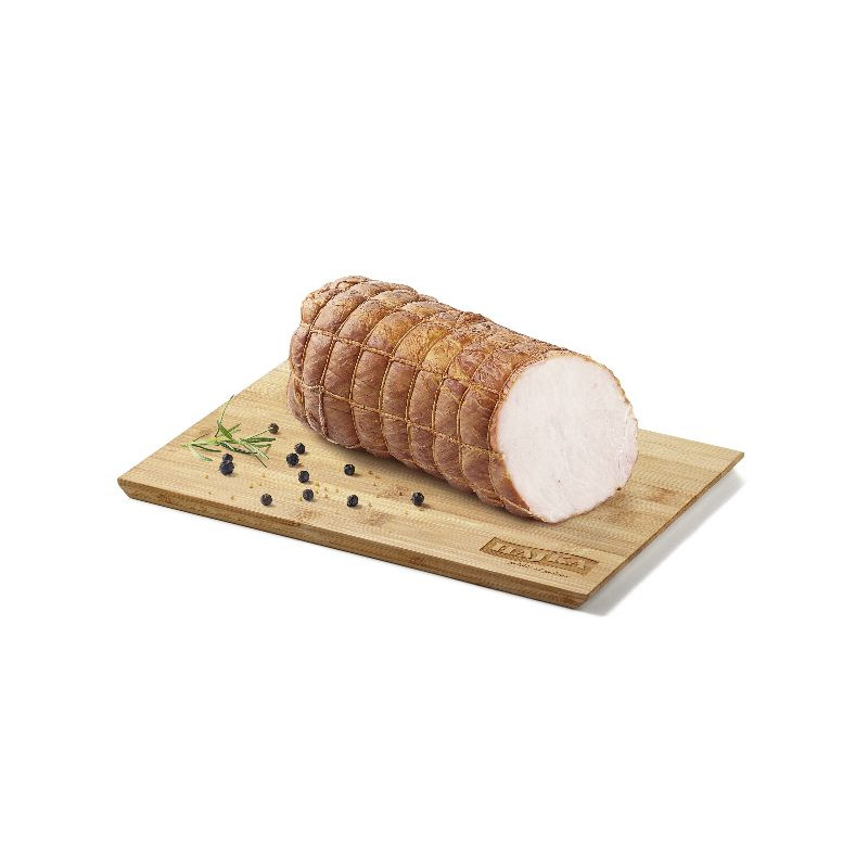 Delikatny schab wieprzowy, złociście uwędzony o łagodnym smaku. Jedna z najchętniej wybieranych wędzonek przez klientów wędlin śniadaniowych.
